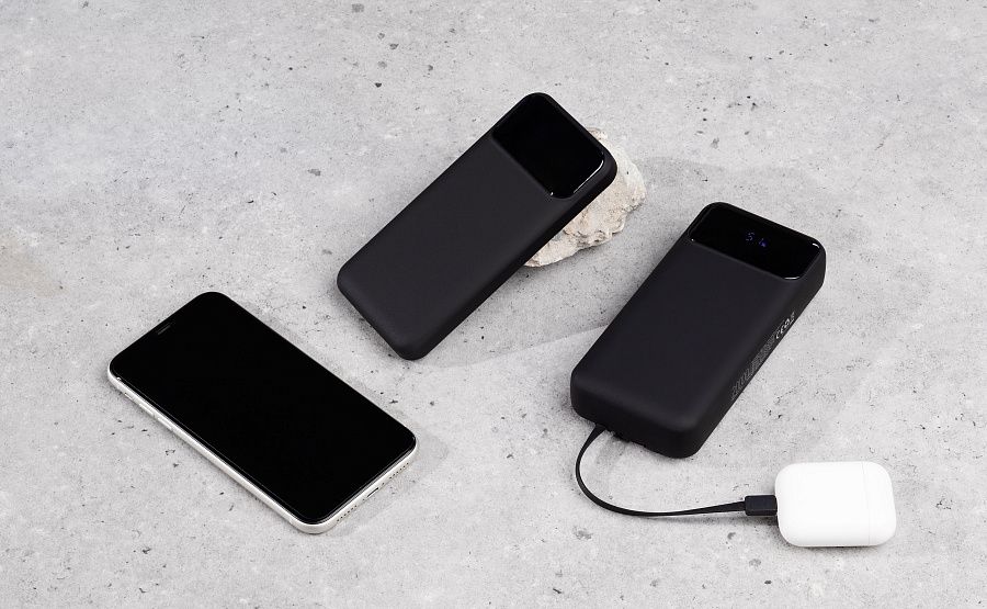 Быстрый зарядник с полезными удобными дополнительными опциями - встроенными кабелями и цифровой индикацией уровня оставшегося заряда в %. Супербонус - яркая персонализация в виде подсветки логотипа.