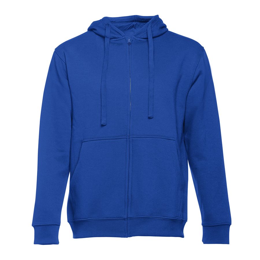 Толстовка с капюшоном на молнии. Внутренняя сторона с начёсом. Подкладка в капюшоне из тонкого трикотажа в тон основного полотна. Потайная центральная молния. Манжеты и низ изделия обработаны рибом 1х1.