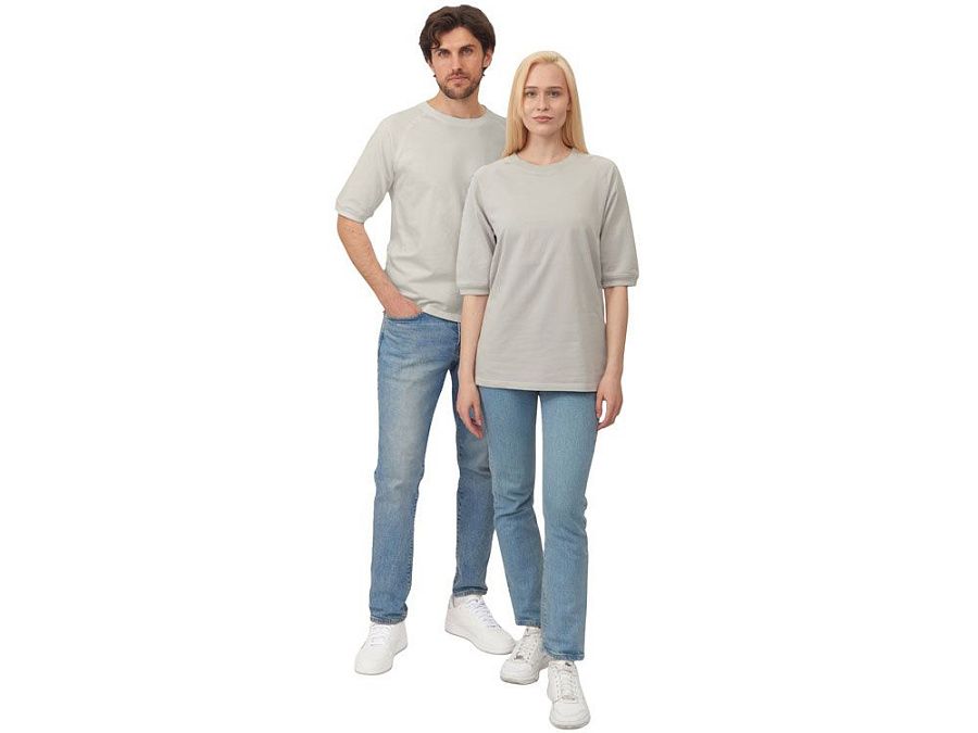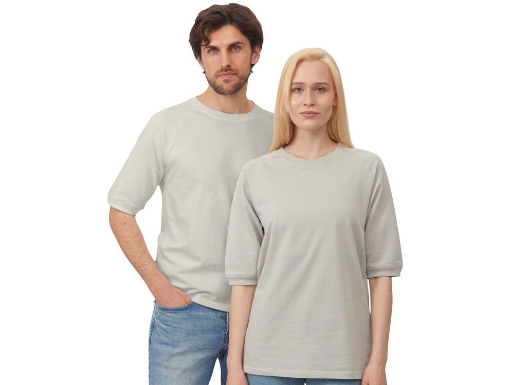 Футболка выполнена из хлопкового френч терри с петельками на изнаночной стороне. Горловина обработана рибом 2х2 и дополнительно усилена тесьмой-елочкой с внутренней стороны спинки и дополнена кокеткой по спинке для нанесения логотипа клиента. Рукав реглан продублирован рибом по низу. Разрезы в боковых швах. Гладкая поверхность полотна позволяет идеально нанести изображение. Футболка комфортного силуэта.