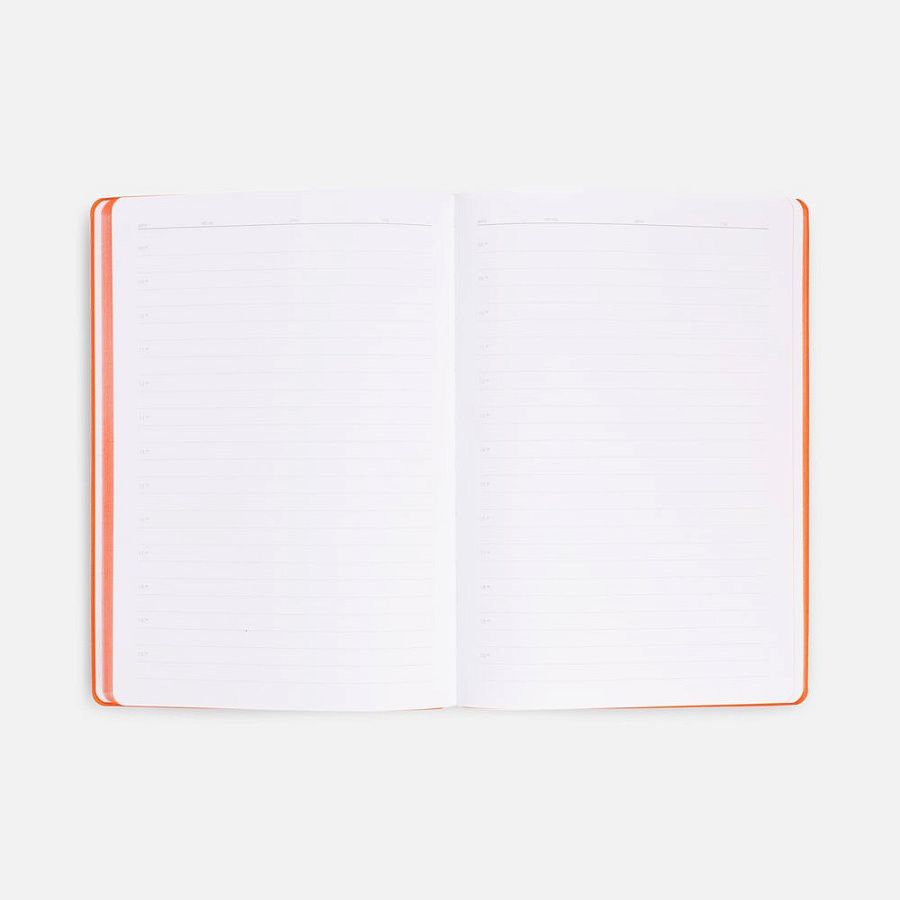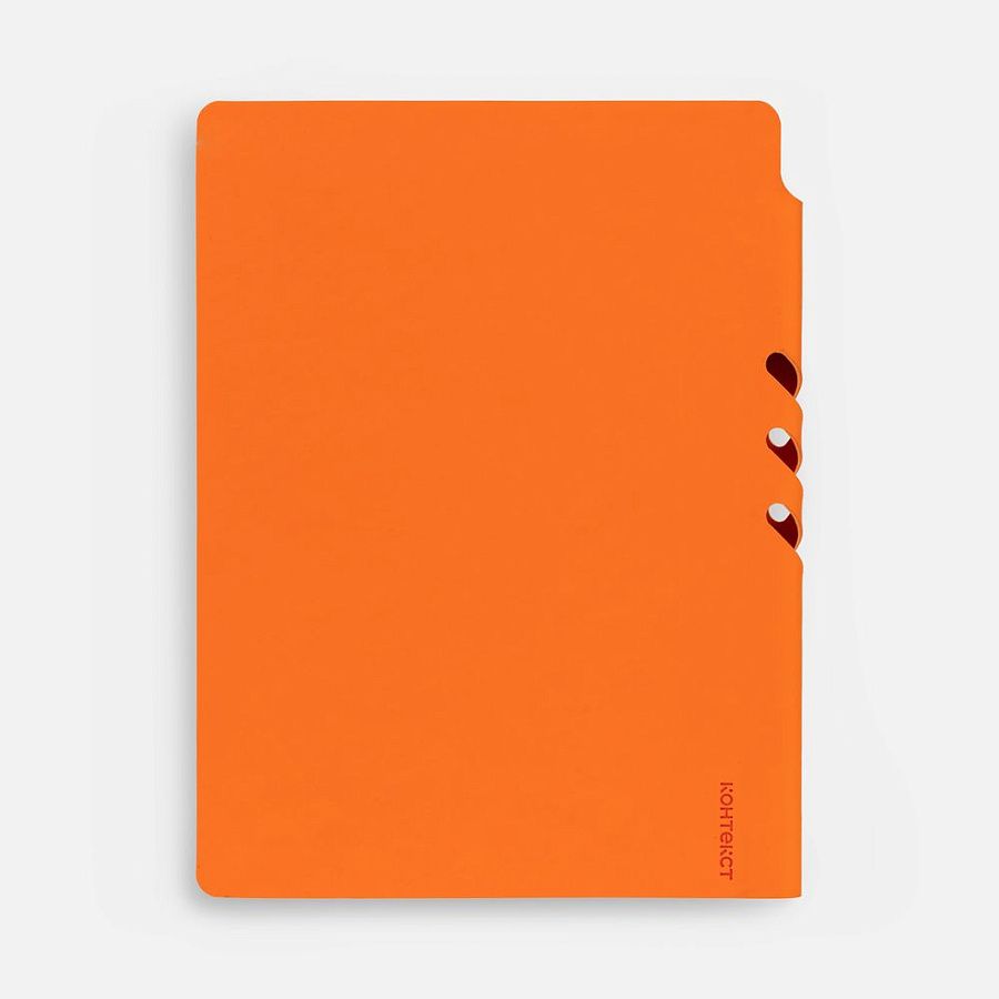 Гибкая обложка выполнена из материала Soft Touch, оранжевый OO и Latte, оранжевый OO (внутренняя часть обложки). Внутри корешка — специальное место для крепления ручки размером до 15х1 см.