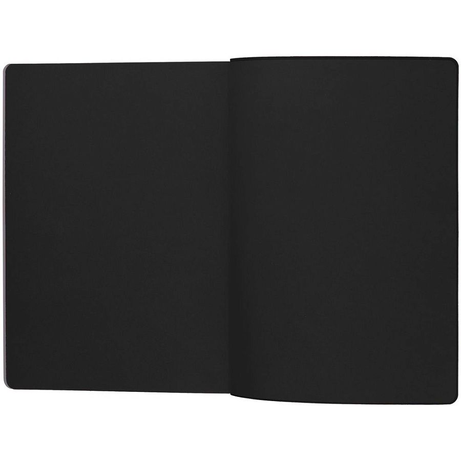 Гибкая обложка выполнена из материала Soft Touch, черный АА и Latte, черный АА (внутренняя часть обложки). Внутри корешка — специальное место для крепления ручки размером до 15х1 см.