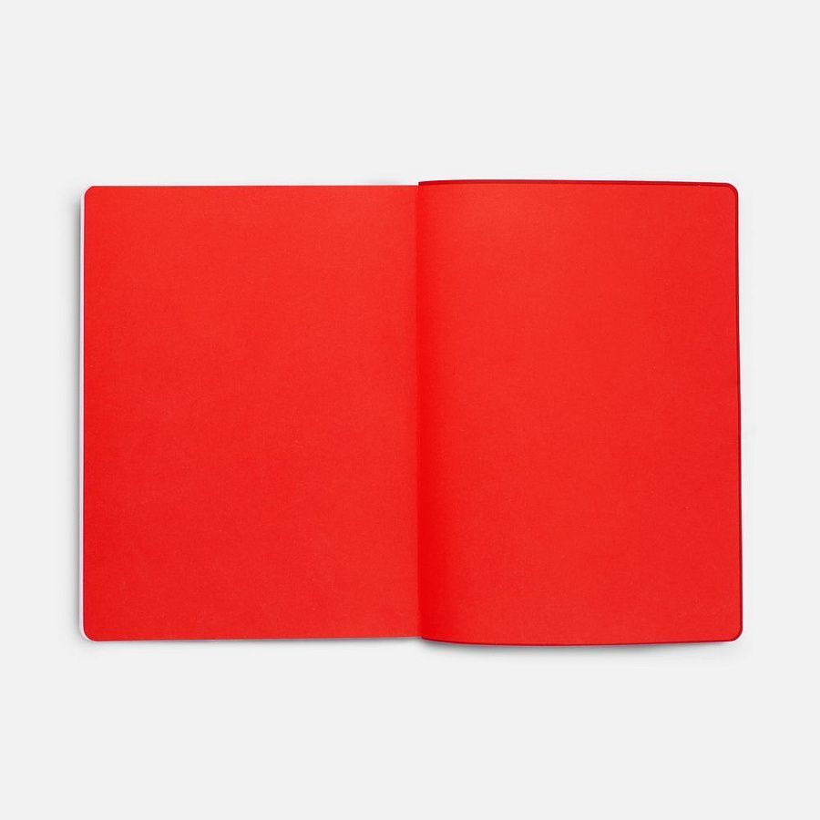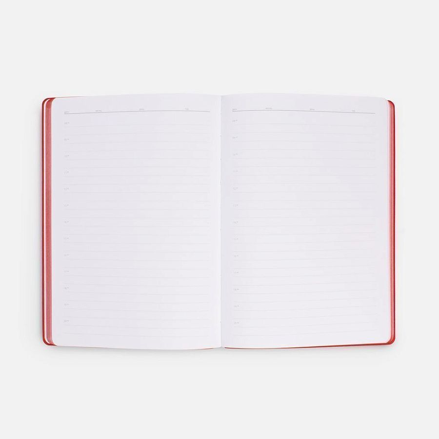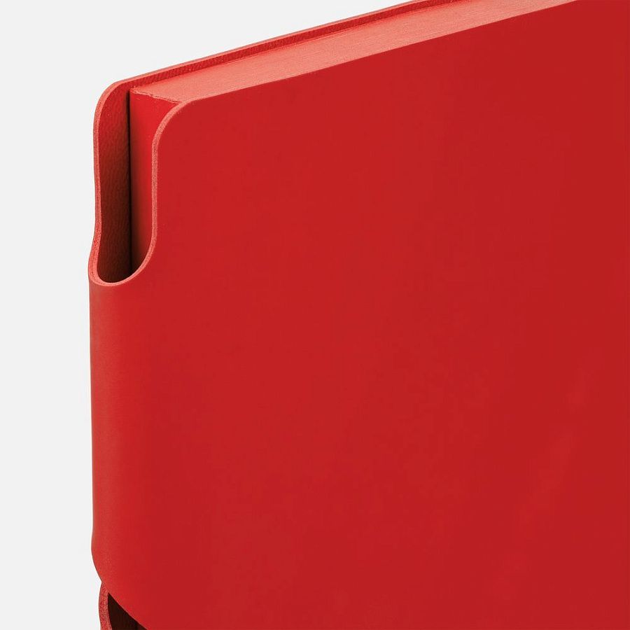Гибкая обложка выполнена из материала Soft Touch Ultra, красный РР и Latte, красный РР (внутренняя часть обложки). Внутри корешка — специальное место для крепления ручки размером до 15х1 см.