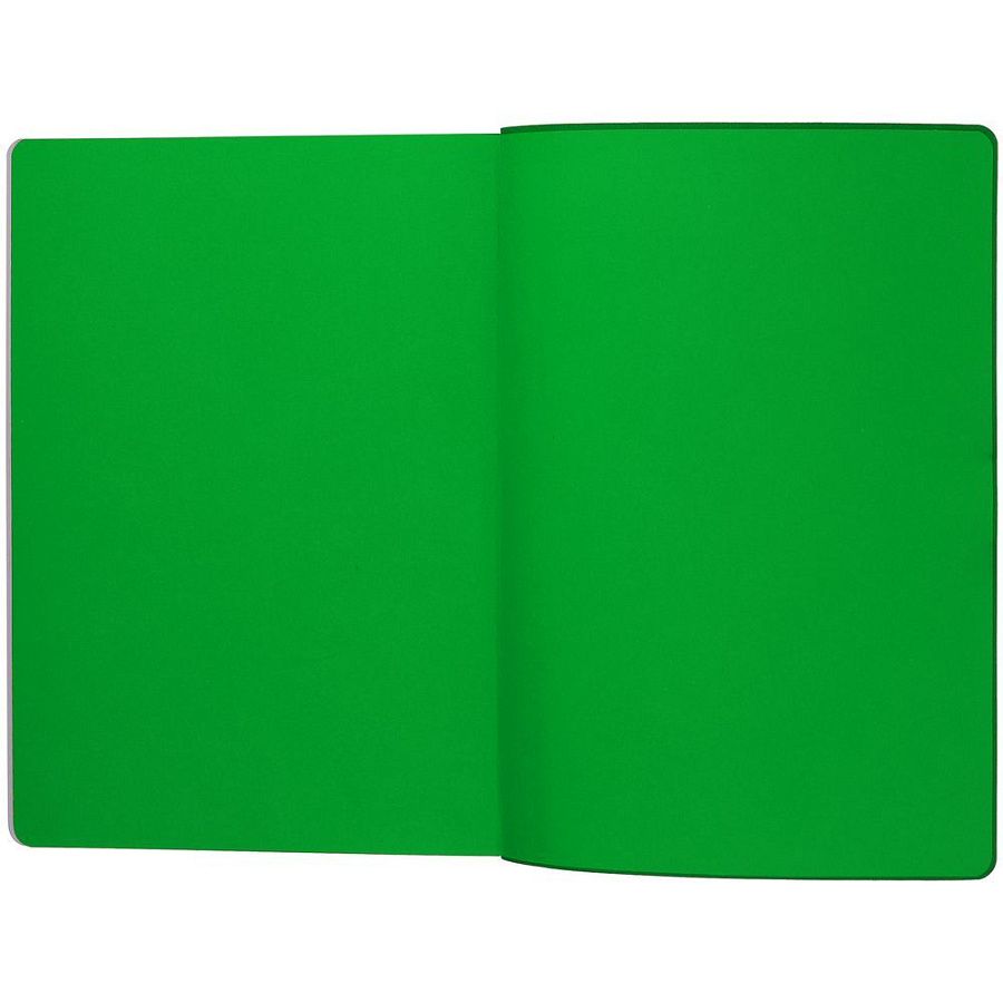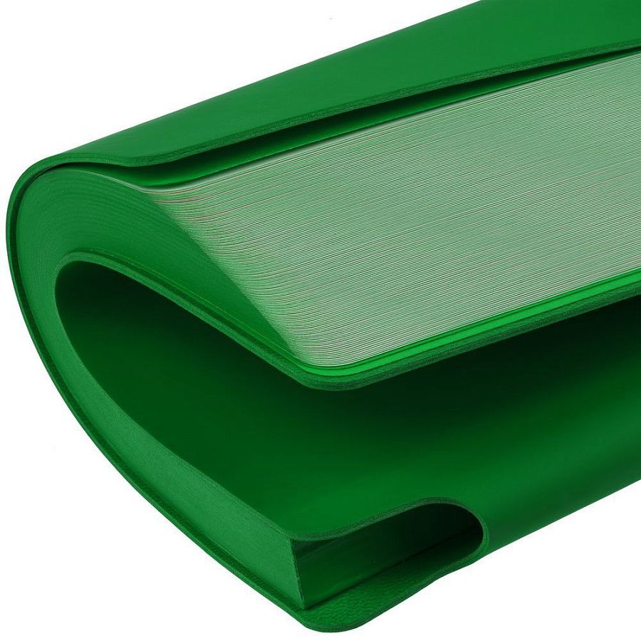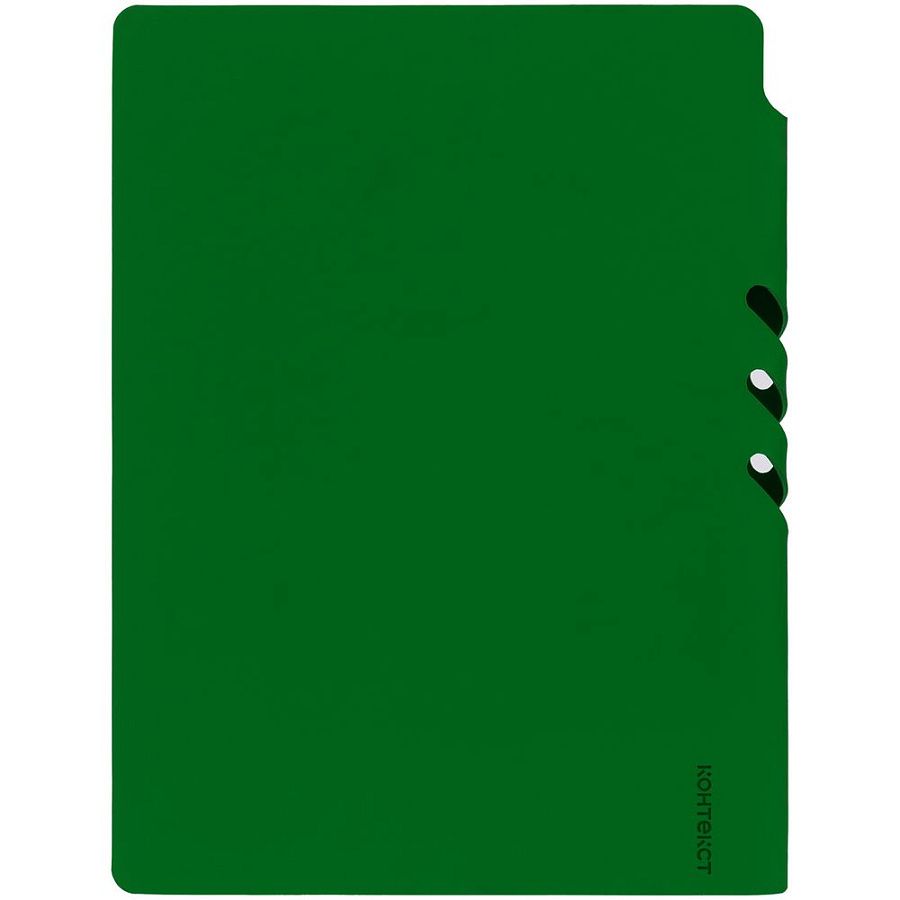 Гибкая обложка выполнена из материала Soft Touch Ultra, зеленый FF и Latte, зеленый FF (внутренняя часть обложки). Внутри корешка — специальное место для крепления ручки размером до 15х1 см.
