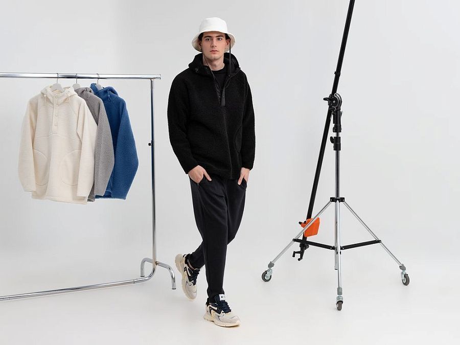 Анорак с капюшоном из современного двухслойного материала— искусственный мех снаружи, флис внутри.