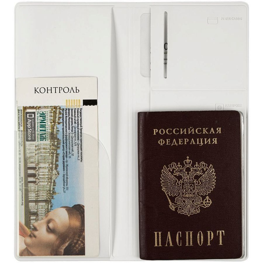 Органайзер имеет 5 отделений: для билетов, паспорта, визиток или кредитных карт.