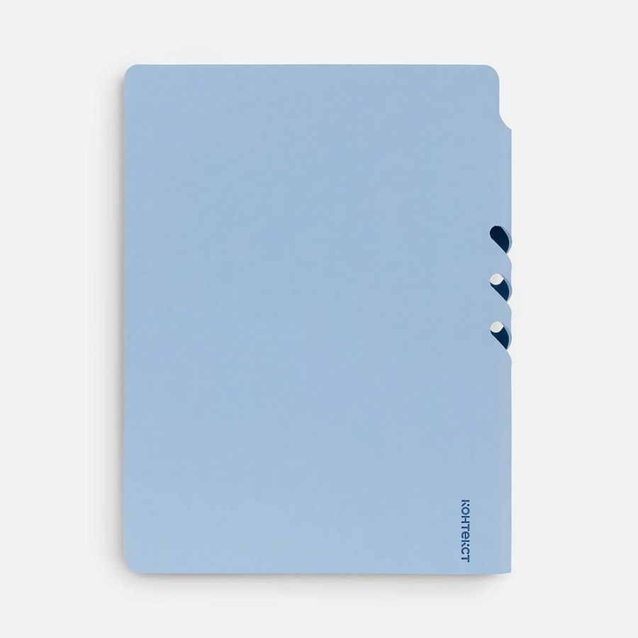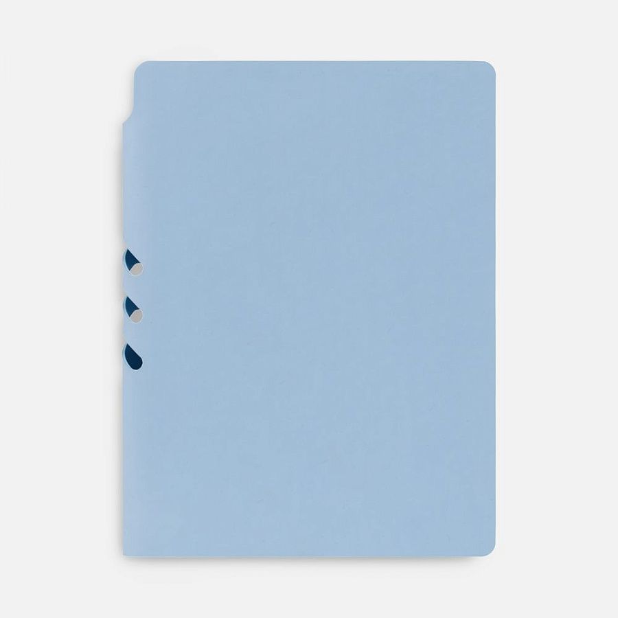 Гибкая обложка выполнена из материала Soft Touch, голубой JJ и Latte, голубой JJ (внутренняя часть обложки). Внутри корешка — специальное место для крепления ручки размером до 15х1 см.