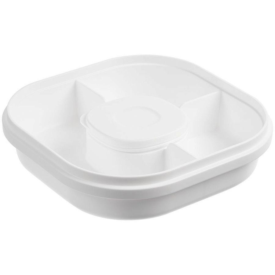 - Контейнер с 2 уровнями, вилкой и емкостью для соуса