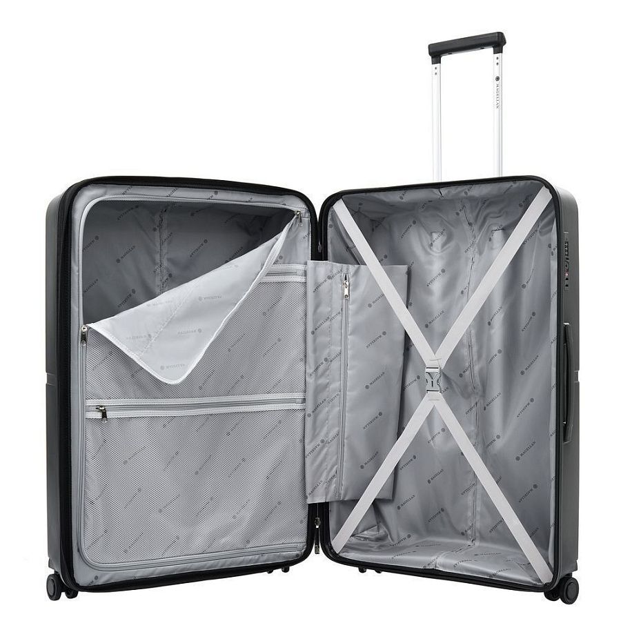 - Ремни для фиксации багажа и тканевый разделитель с сетчатым карманом