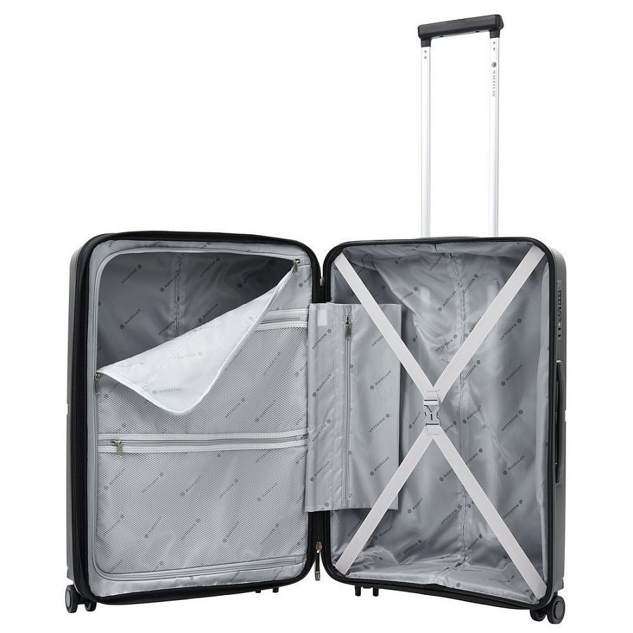 - Ремни для фиксации багажа и тканевый разделитель с сетчатым карманом
