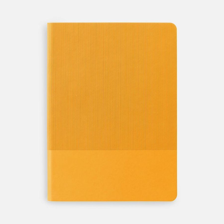 Ежедневник с гибкой обложкой выполнен из материала Soft Touch, желтый KK и Latte, желтый (внутренний материал); дополнен ляссе желтого цвета и фактурным тиснением обложки.