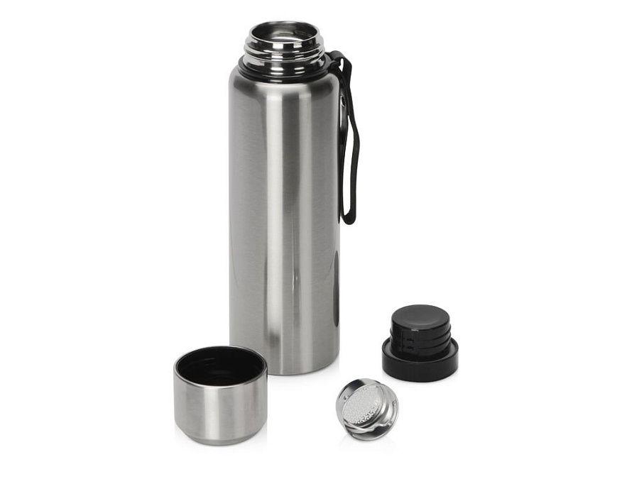 Вакуумный термос c двойными стенками из «пищевой» нержавеющей стали 304 марки для небольших путешествий и отдыха на природе. Надежно удерживает тепло и холод в течение 24 часов. Крышку можно использовать в качестве чашки. В комплекте имеется съемное ситечко из нержавеющей стали. Имеется прочный и удобный ремешок для переноски. Корпус покрыт специальной порошковой краской для надежного хвата и защиты от царапин. Объем 800 мл.