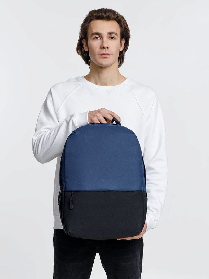 Двухцветное исполнение с темным низом и более светлым верхом, с одной стороны, помогает рюкзаку дольше сохранять опрятный внешний вид, а с другой — позволяет активнее и контрастнее выделить логотип компании.