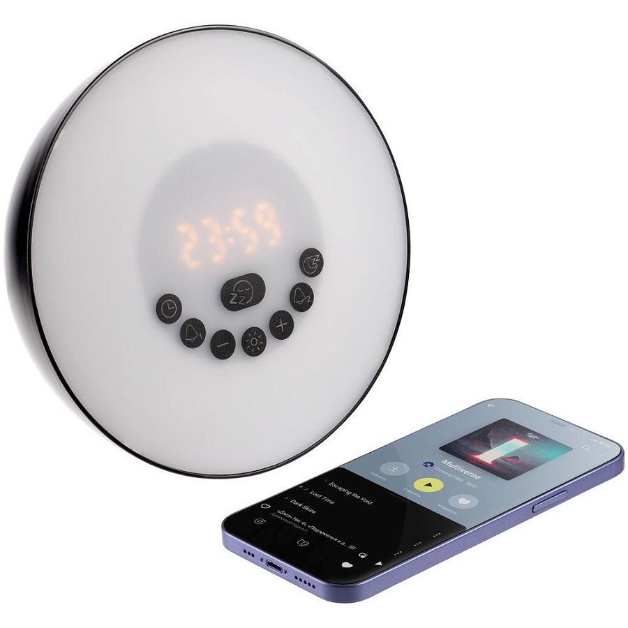 Лампа активируется за некоторое время до настроенного будильника и постепенно увеличивает яркость вплоть до момента, когда вы планируете окончательно проснуться. Эффект мягкого пробуждения можно дополнить звуками природы: шумом волн или пением птиц.