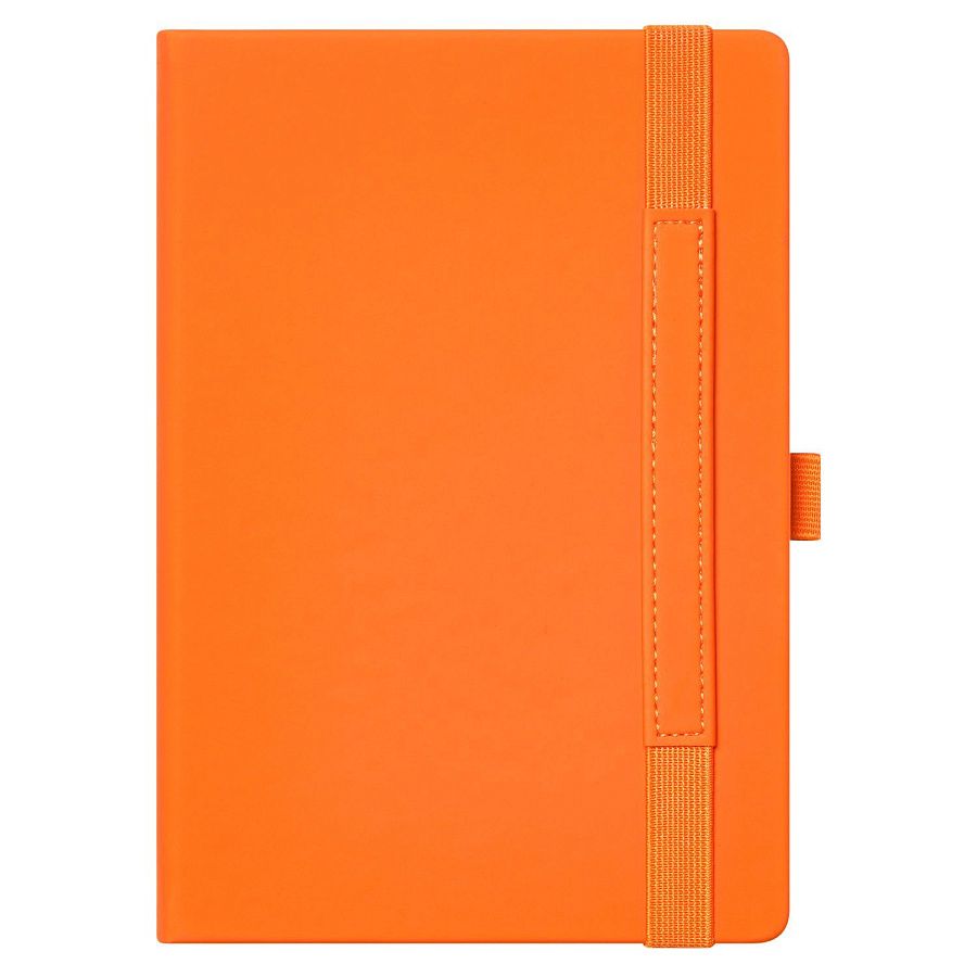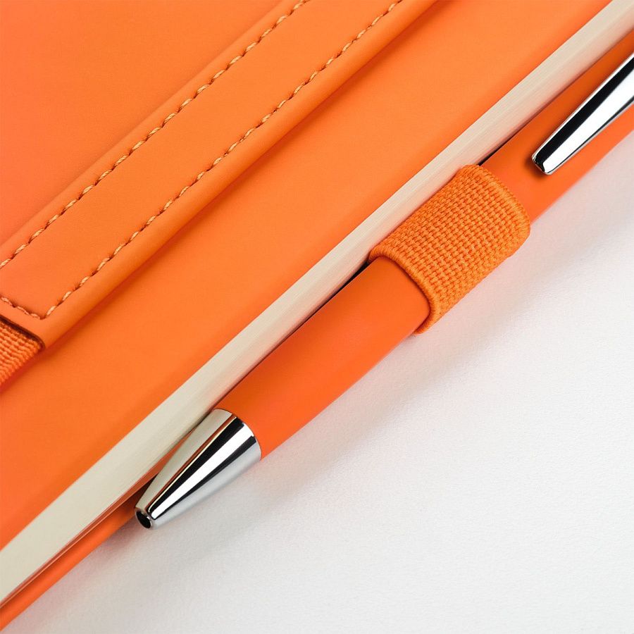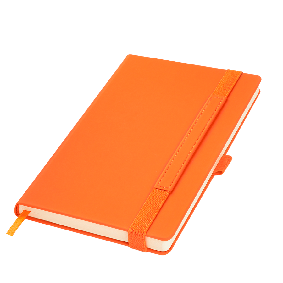 Вертикальная резинка-фиксатор с вставкой из ПУ-материала обложки и петелька под ручку, в цвет обложки