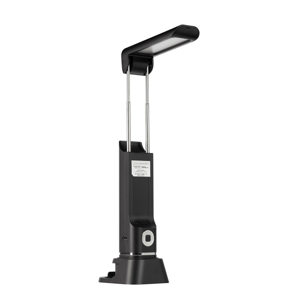 Благодаря подставке лампу удобно установить на горизонтальной поверхности, предусмотрен фиксатор для смартфона. 3 положения основания позволяют задать желаемый наклон экрана и использовать смартфон как в горизонтальном так и в вертикальном положении. Телескопические направляющие увеличивают высоту лампы на 10 см, регулировка наклона до 90º для настройки светового потока.