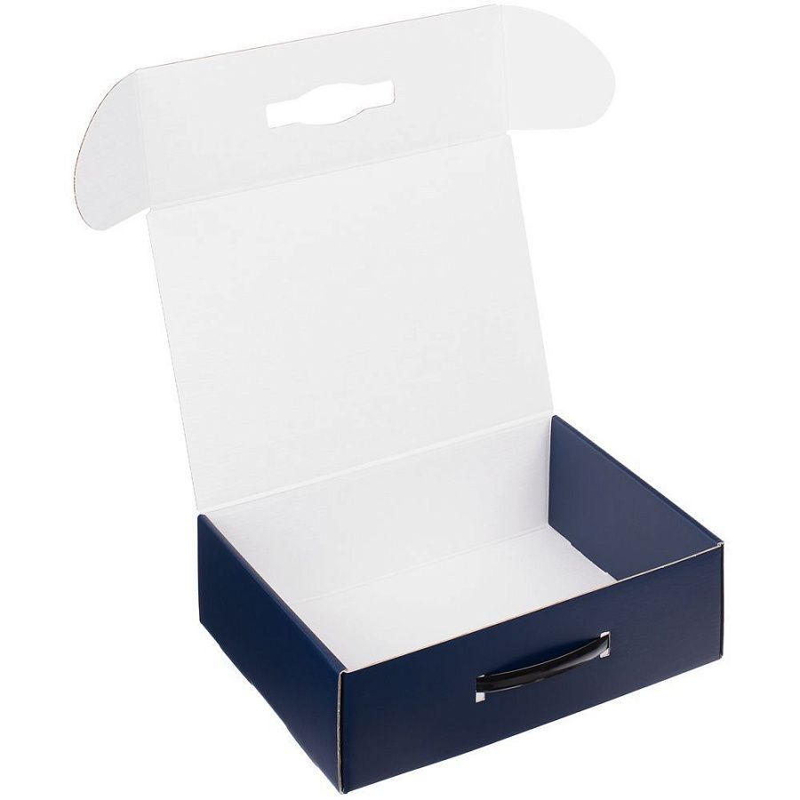 Самосборная коробка-шкатулка со вставной пластиковой ручкой.