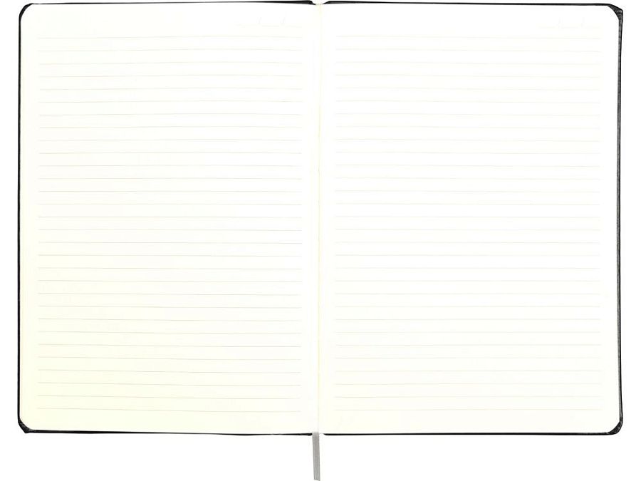 Линованный блокнот формата А5 с закладкой, эластичной застежкой и удобным карманом для карточек и записок.
