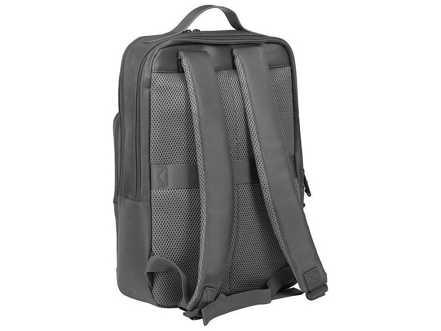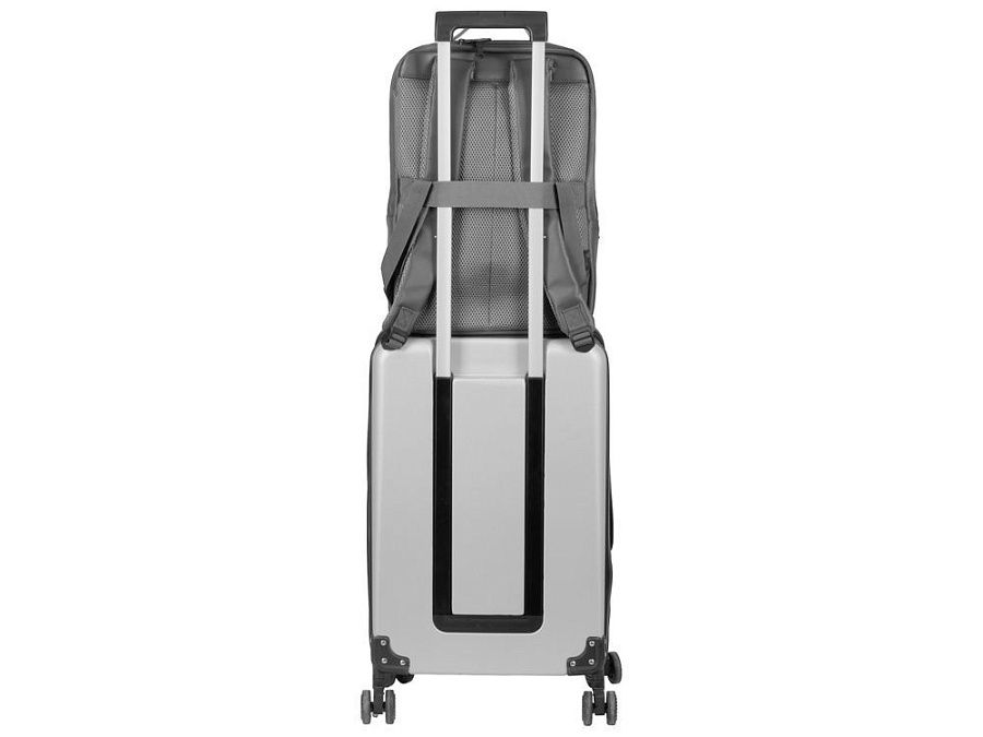 Бизнес-рюкзак из плотной ткани, хорошо держащий форму, имеет строгий и стильный дизайн. Внутри 2 отделения - для ноутбука и для одежды с органайзером и внутренним карманом на молнии. Снаружи расположено большое отделение на молнии. Рюкзак удобен для поездок, при этом компактен и оснащен ремнем для крепления к чемодану. В комплекте нетканый мешок для хранения и съемный металлический шильд для нанесения вашего логотипа.