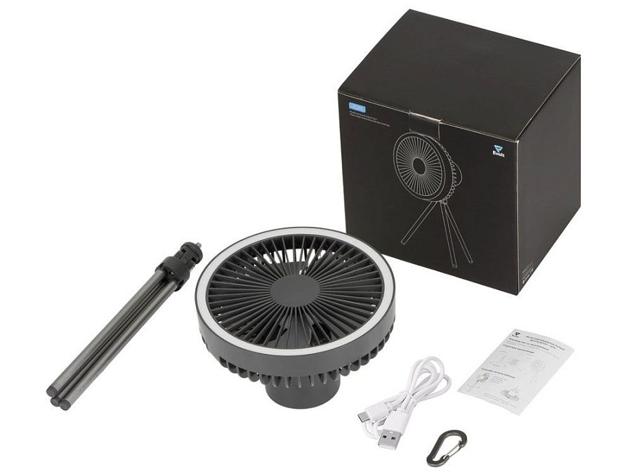 вентилятор d18 х 11,5 см, штатив d3,1 х 25 см, карабин, кабель usb-type c, инструкция