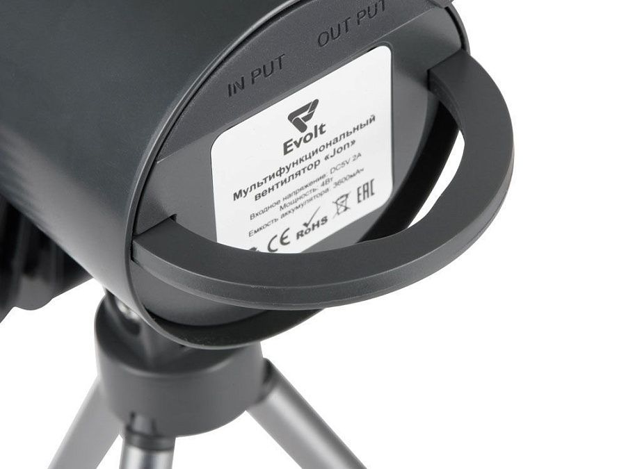 Ещё одна незаменимая функция для кэмпинга - возможность заряжать от вентилятора другие устройства (как от пауэрбанка), мощность аккумулятора - 3600 мА/ч.