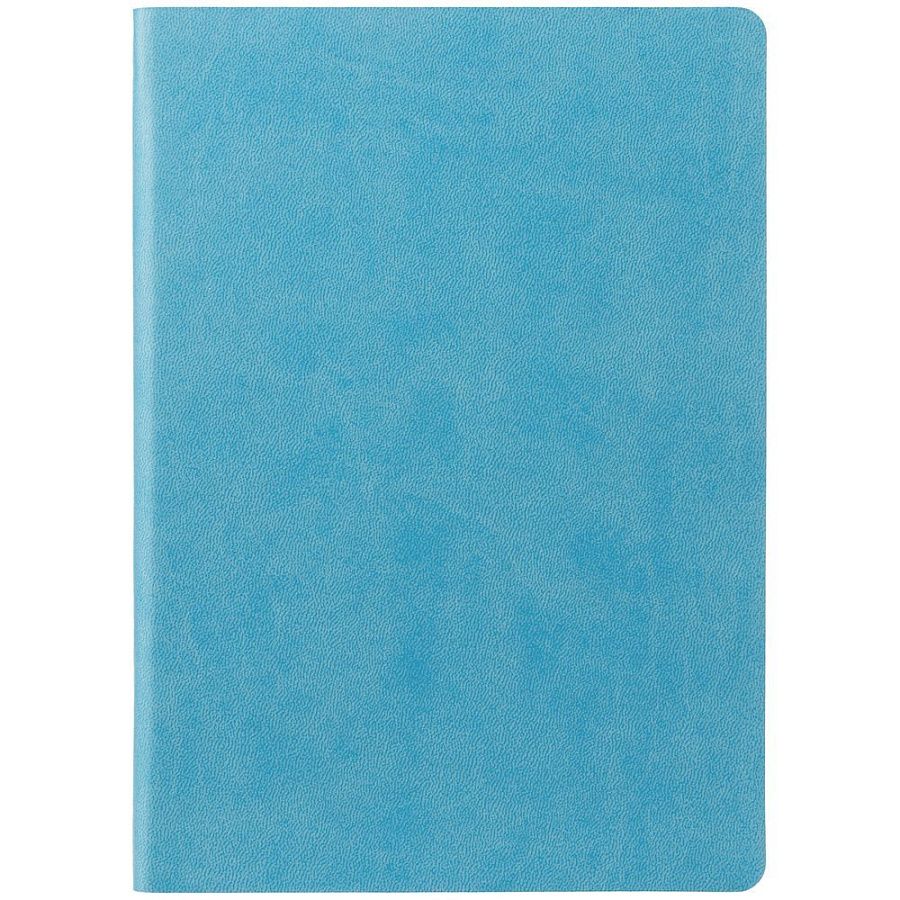 Ежедневник с гибкой обложкой, выполнен из материала Latte, голубой, дополнен ляссе в цвет обложки.