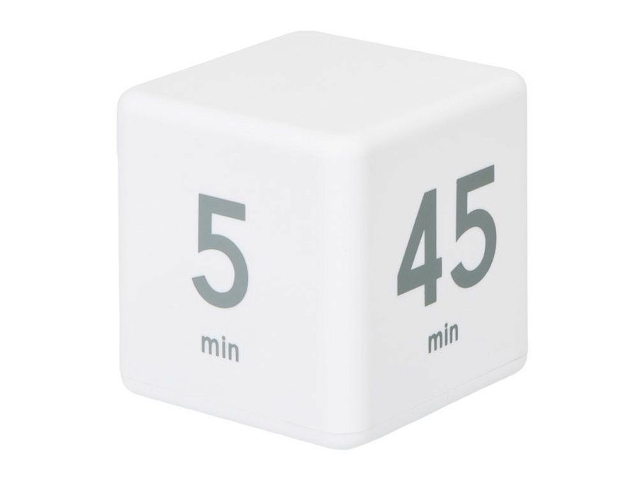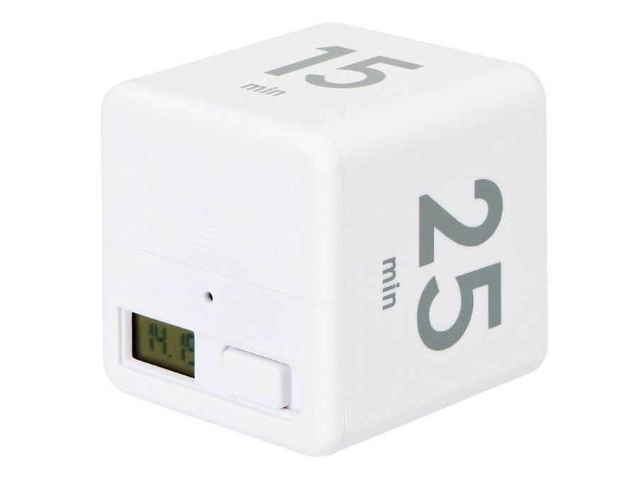 На сторонах куба напечатаны четыре предустановленных времени обратного отсчета (5, 15, 25 и 45 минут). Просто включите таймер и поверните его нужной цифрой наверх для начала отсчета времени. Когда время закончится, раздастся звуковой сигнал.