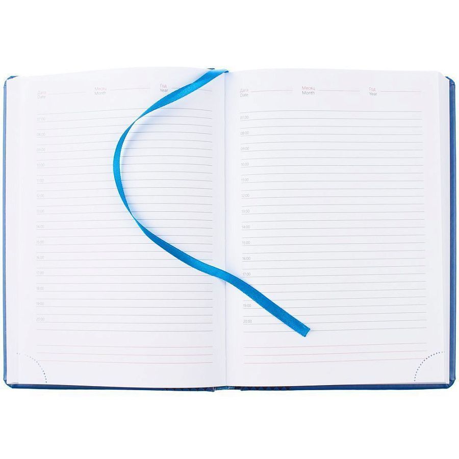 Ежедневник с твердой обложкой, выполнен из материала Waltz, синий НН, дополнен ляссе в цвет материала.