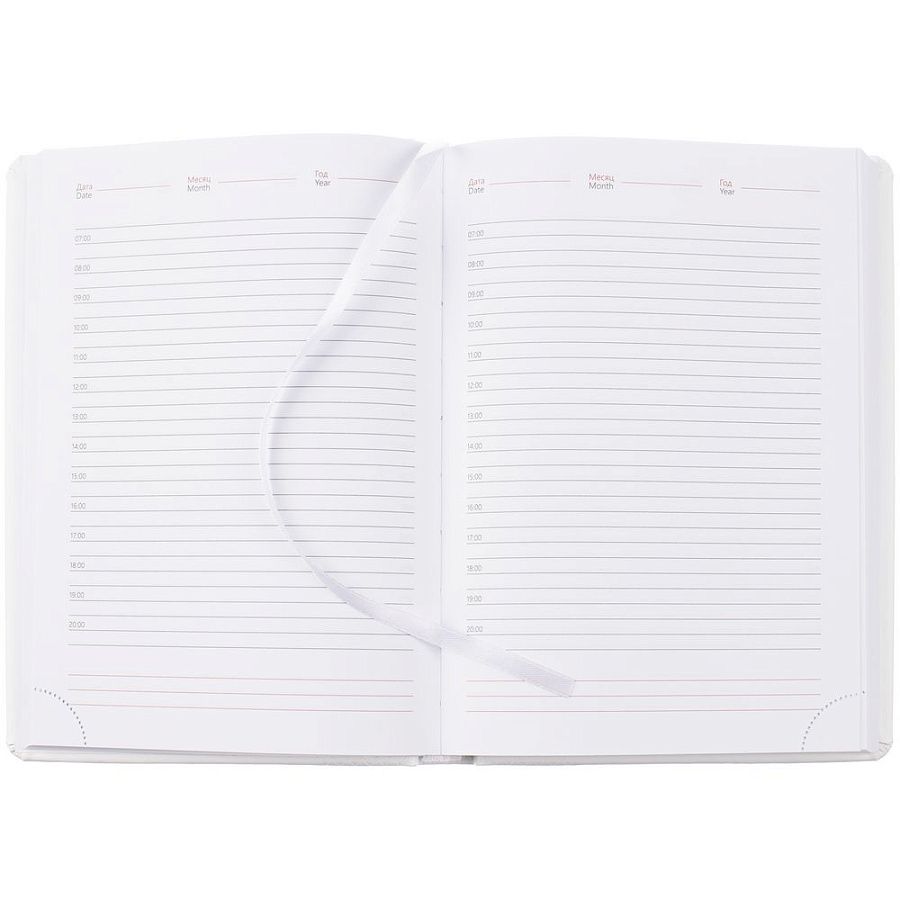 Ежедневник с твердой обложкой, выполнен из материала Waltz, белый ВВ, дополнен ляссе в цвет материала.