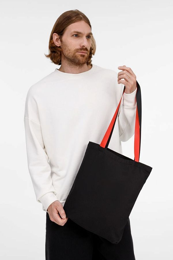 Базовый шопер разработан в рамках единой коллекции одежды и аксессуаров и легко комбинируется с ее элементами. Специально спроектированные лекала и технологии пошива открывают простор для любых вариантов кастомизации и нанесения изображений. На видимой части изделий нет лейблов с айдентикой бренда, а название бренда с уходника легко удалить.