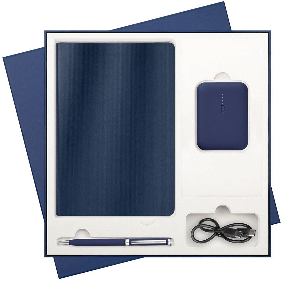 В комплекте: стильный ежедневник для планирования и любых записей, ручка для комфортного письма и внешний аккумулятор, который позволит оставаться на связи в любой ситуации.