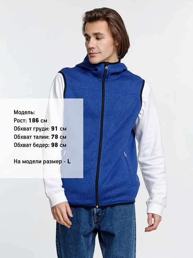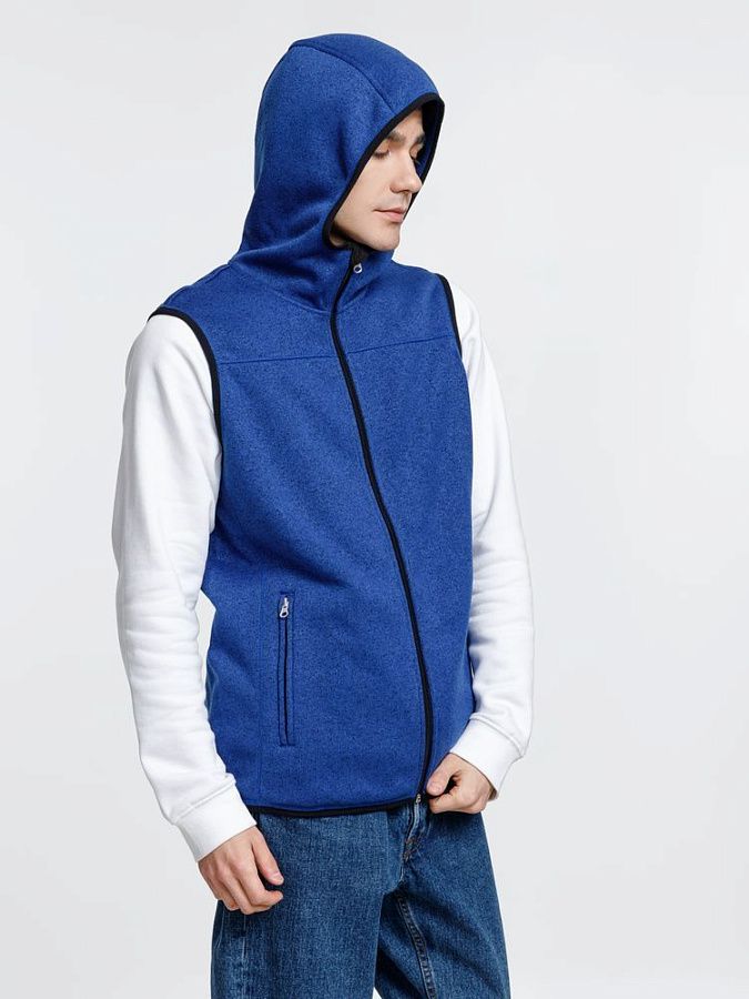 Вязаный жилет унисекс на молнии с капюшоном.