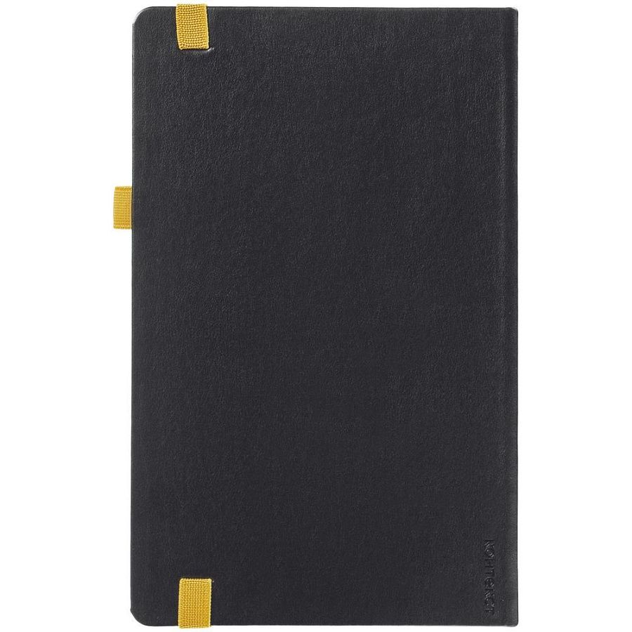 Ежедневник с твердой обложкой, выполнен из материала Waltz, черный АА, дополнен желтой резинкой и ляссе.