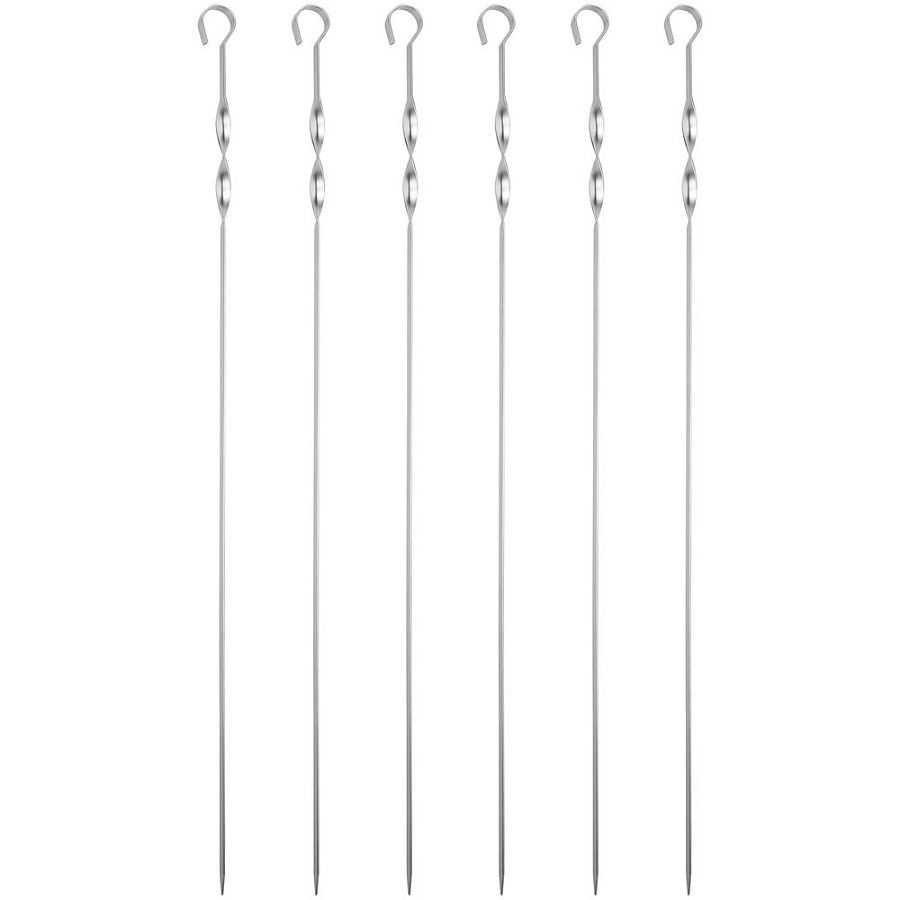 Длинные шампуры подходят для мангалов шириной до 40 см. Спираль у рукоятки позволяет фиксировать шампур при переворачивании шашлыка во время приготовления.