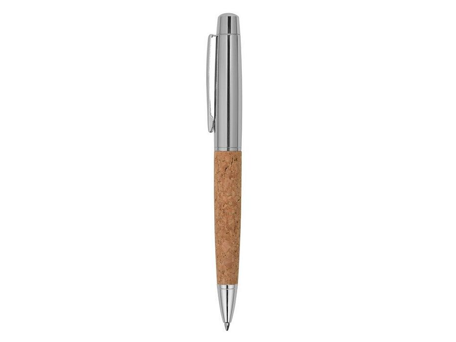 Металлическая шариковая ручка Cask с вставкой из пробки на корпусе в металлическом футляре.