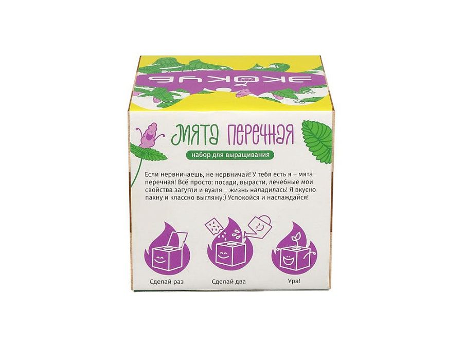 Набор включает: кубический горшок из натуральной берёзовой древесины, семена и специальный питательный грунт, подходящий для конкретного сорта.