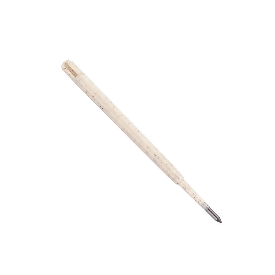 Металлический корпус карандаша выполнен из переработанного алюминия, а стержень - из переработанного пластика с пшеничным волокном. Грифель изготовлен из графита высокой плотности, длина его письма составляет до 5 км.