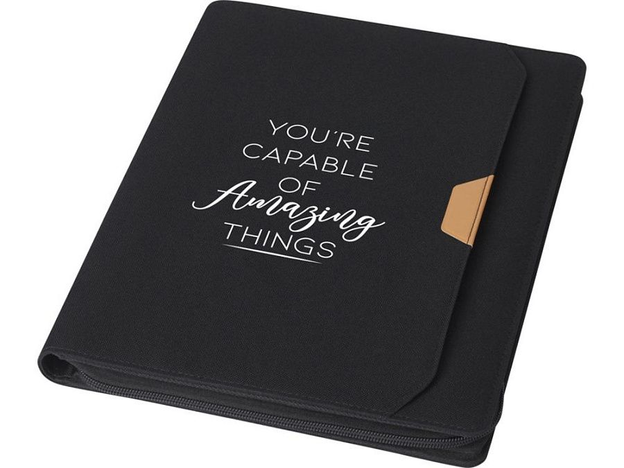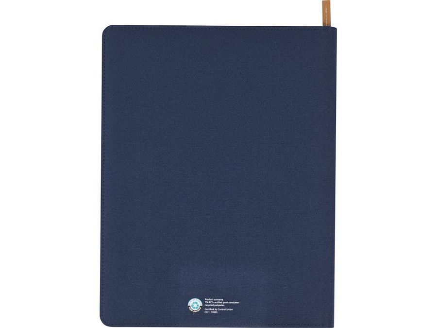 Папка-органайзер Nomumi, сертифицированная RCS, частично изготовлена из переработанного полиэстера, бывшего в употреблении, что делает данную папку более экологичным выбором, поскольку помогает сократить использование первичного сырья. Имеет застежку-молнию, петлю для ручки, карман-гармошку и 20 белых листов в линейку из переработанной бумаги плотностью 70 г/м² из экологически чистых источников. Ручка и другие аксессуары, представленные на фотографиях, в комплект поставки не входят.