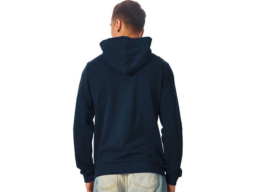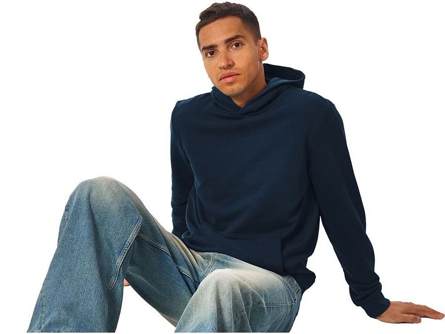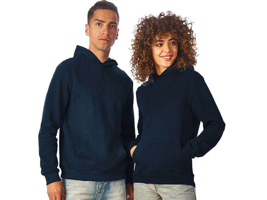 Толстовка с капюшоном (худи) из плотного хлопкового 3х ниточного футера. В капюшоне подкладка в тон, а горловина спинки дополнительно укреплена тесьмой с выделкой «елочка». Капюшон без шнурков – ничего не отвлекает от вашего брендирования. Манжеты и низ изделия отделаны рибом 2х2. Глубокий комфортный карман кенгуру на полочке. Полотно из утяжеленного хлопкового футера внутри с петельками без начеса.