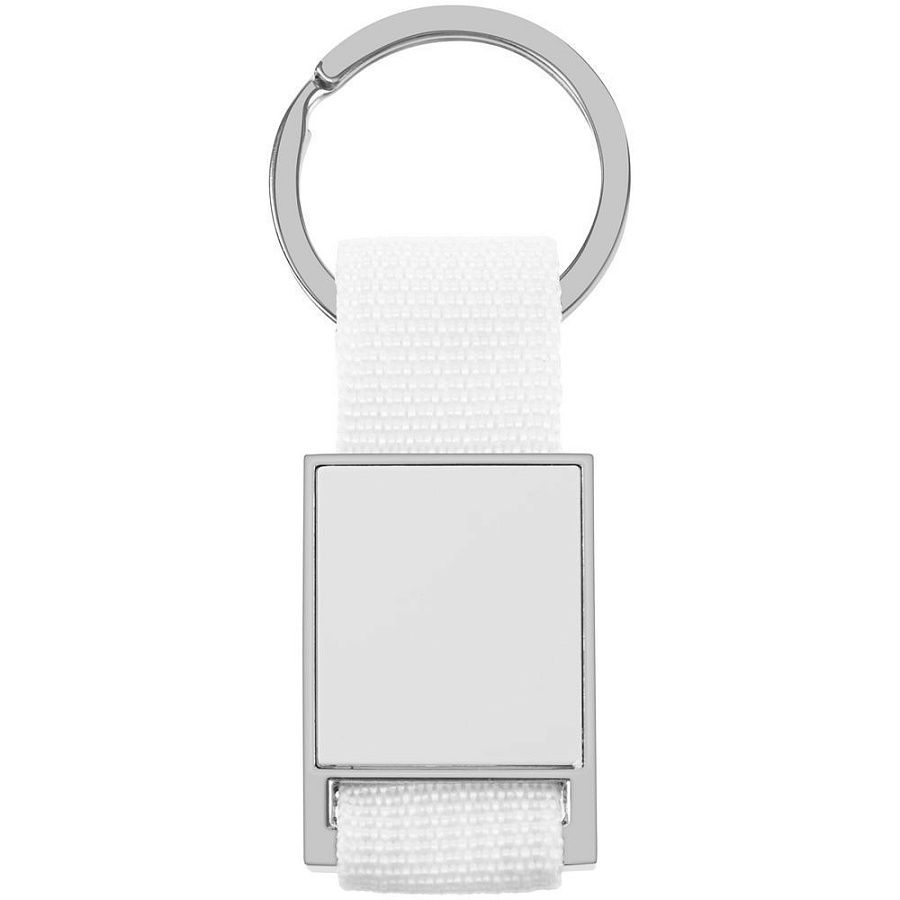 Элегантный металлический брелок с тканевой вставкой.