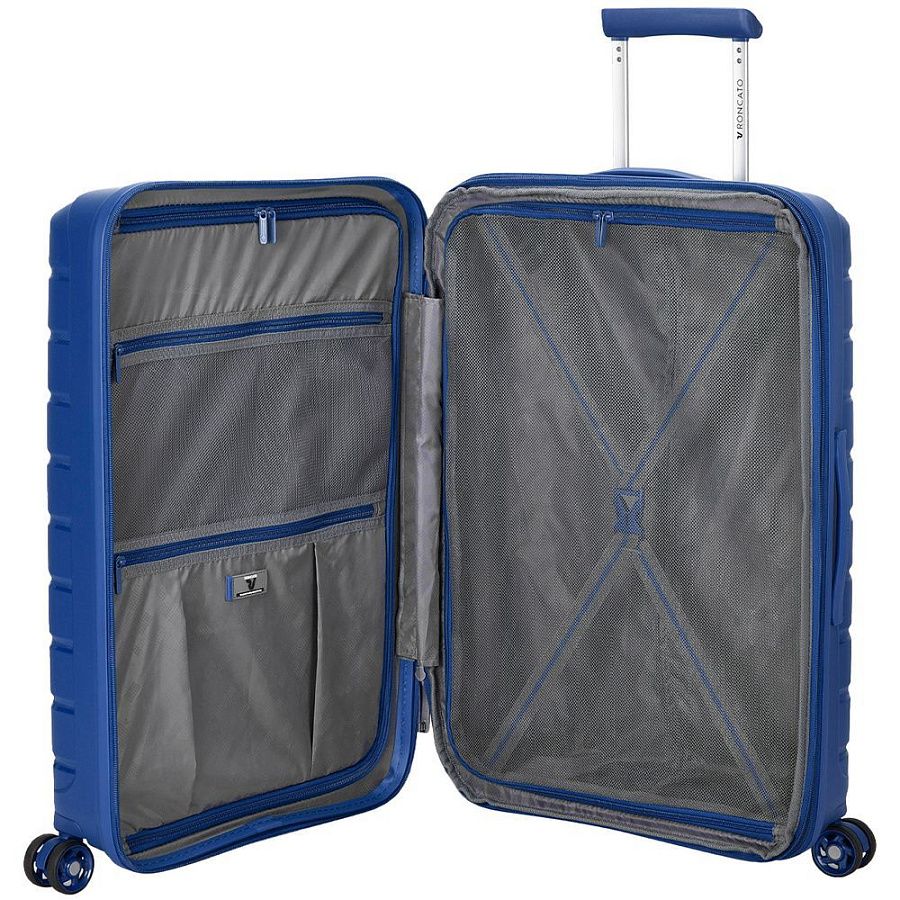 - Чемодан с 2 отделениями: одно отделение с сетчатым разделителем и прижимными ремнями, а второе оснащено перегородкой на молнии с двумя карманами