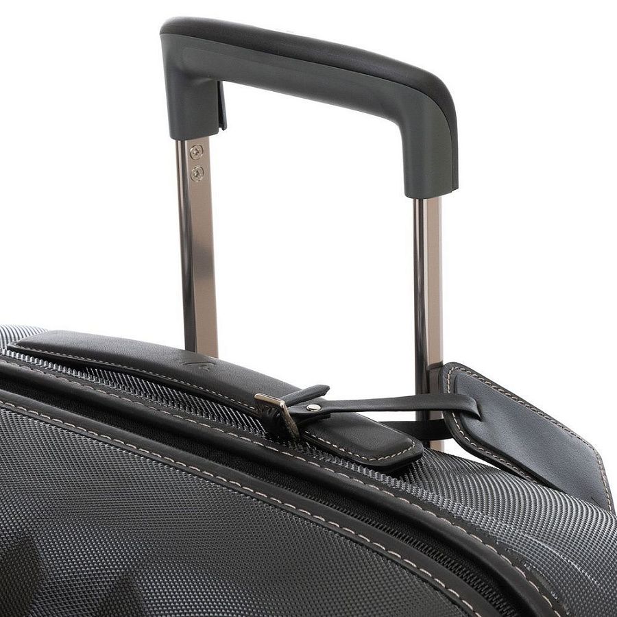 Наружные и внутренние элементы — ручки, фурнитура, обрамление молний и адресная бирка — выполнены из натуральной кожи, благодаря чему чемодан E-Lite приобретает по-настоящему изысканный вид.