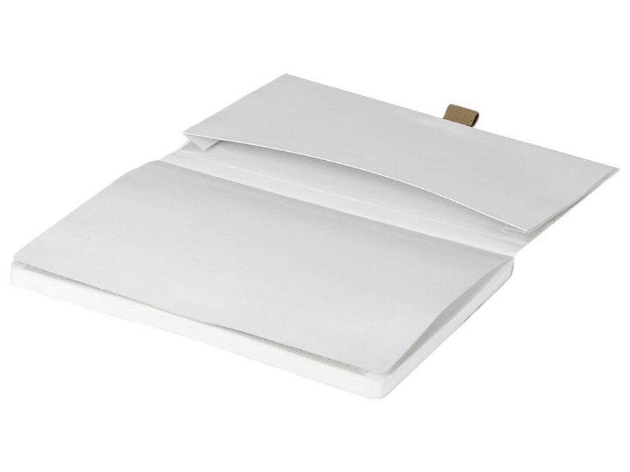 Также блокнот снабжен резинкой и петлей для ручки. Упаковка — конверт из нетканого материала с логотипом.