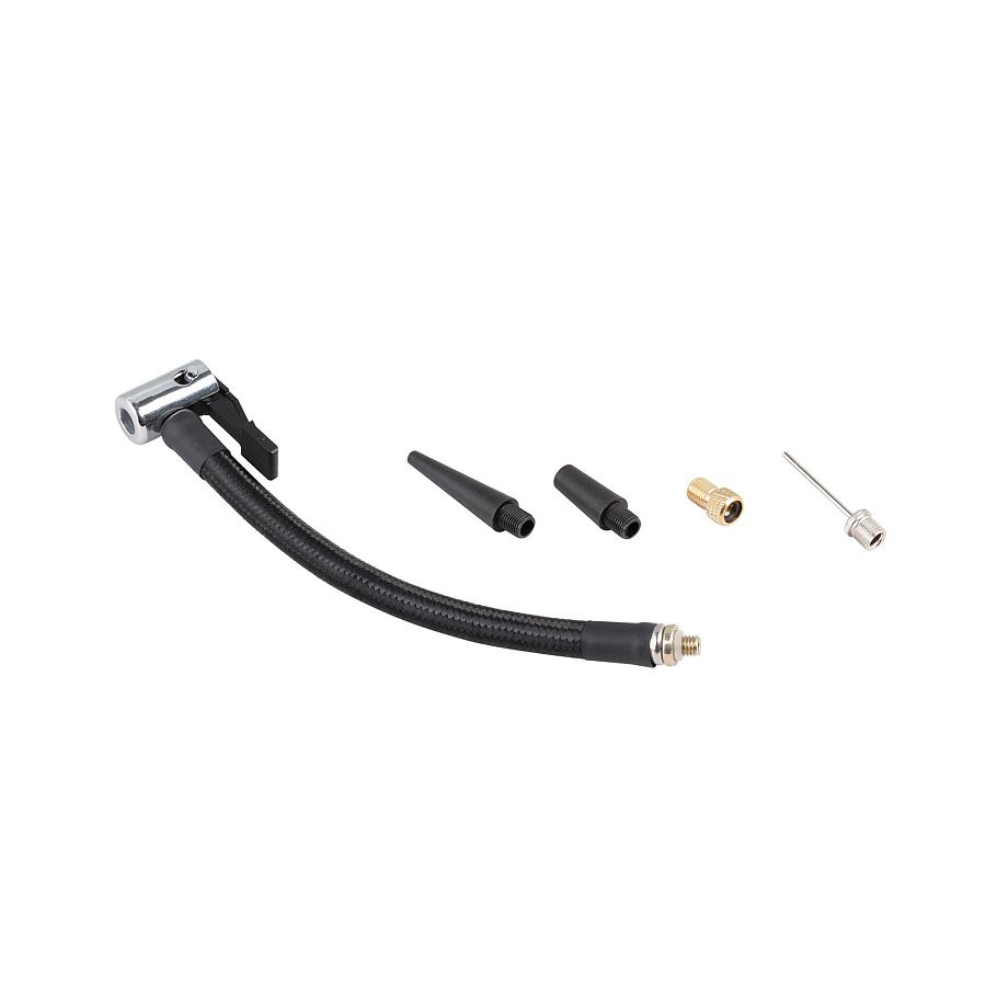 В комплекте с компрессором идет подробная инструкция на русском языке, кабель USB/type-C, съемный шланг 17 см с быстросъемным наконечником и 4 адаптера (игла, 2 штуцера, переходник).