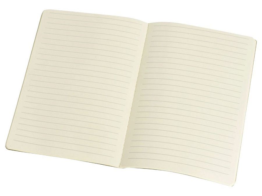 Универсальный блокнот в трендовых оттенках. Обложка матового цвета с эффектом "меланж". Прошитый нитками блок на 60 линованных страниц.