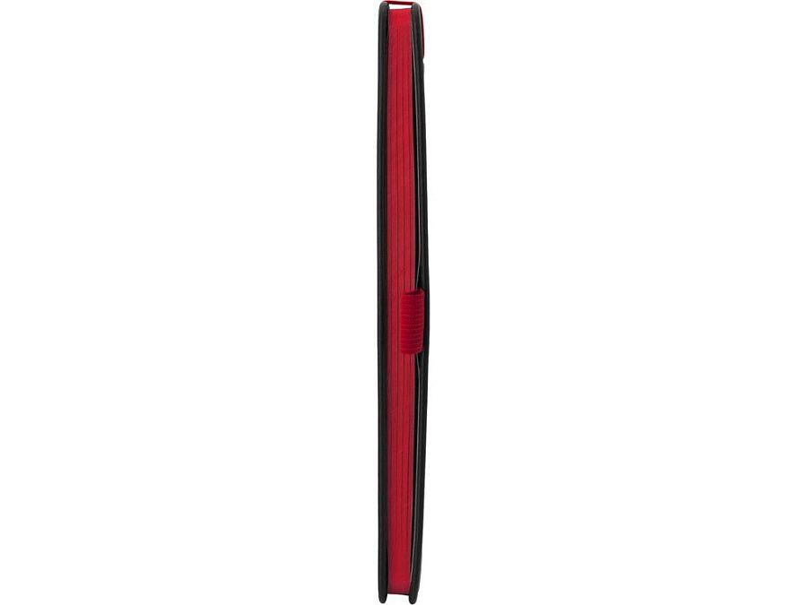 Блокнот в твердой обложке с закругленными углами черного цвета. Ляссе, резинка и срез яркого контрастного цвета делают его очень стильным и функциональным бизнес-аксессуаром.