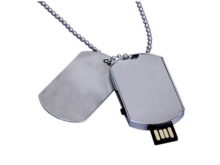 Металлическая флешка в форме армейского жетона. Длина цепочки 65 см.