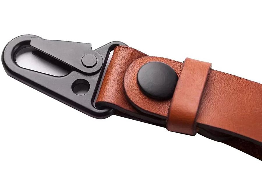 Ремешок сшит из прочной кожи оранжевого цвета. Оборудован надёжным металлическим карабином, самопроизвольное расцепление которого невозможно. Ключи, прицепленные к нему, обречены вечно храниться в глубинах сумки или кармана джинсов, и у них нет ни единого шанса потеряться. Прицепить ремешок можно к шлёвке джинсов или к куртке.