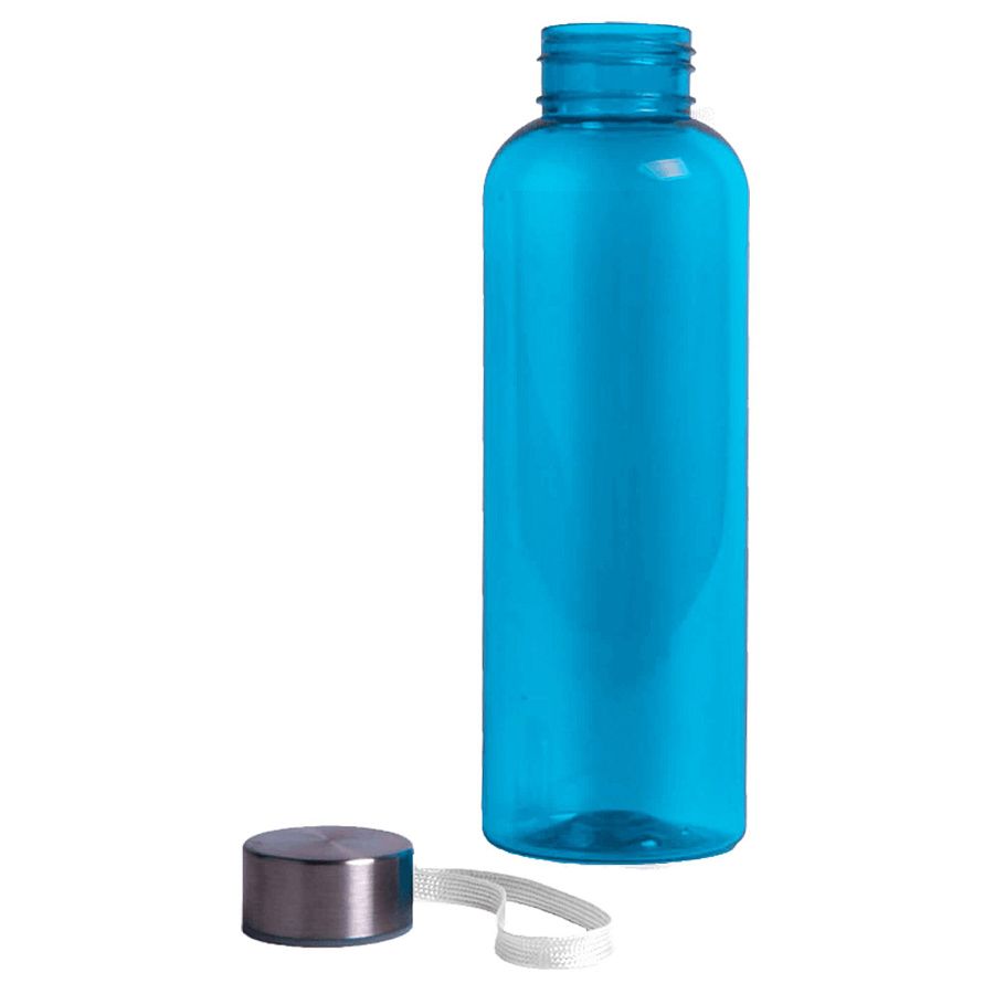 Пластиковая цветная бутылка с металлической крышкой.