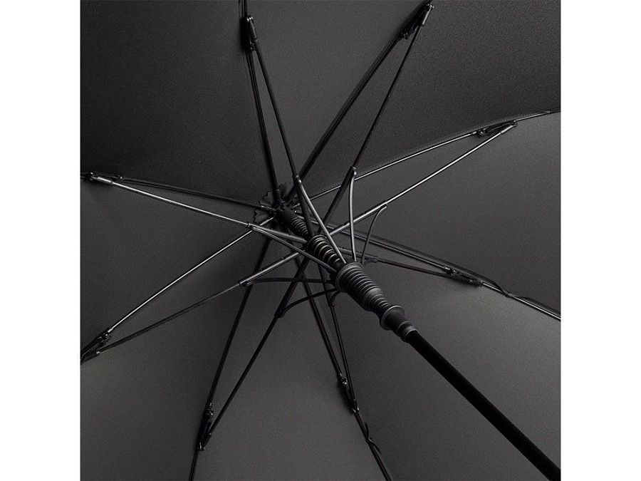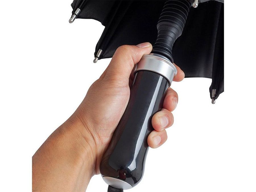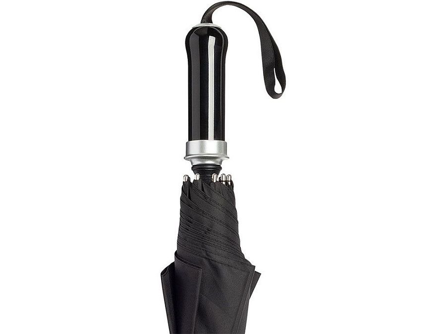 Удобный автоматически открывающийся зонт-трость с уникальной функцией быстрого открытия - нужно потянуть вниз металлическое кольцо на ручке. Купол зонта изготовлен из эпонжа из переработанного пластика, с использованием технологии WaterSAVE, когда окрашивание материала происходит в процессе производства, за счет чего снижает потребление электроэнергии и воды. Высококачественная система защиты от ветра в штормовых условиях обеспечивается гибкими спицами из стекловолокна. Ручка глянцево-черного цвета с хромированными вставками и петлей для переноски. В комплекте чехол, застегивающийся на кнопку.