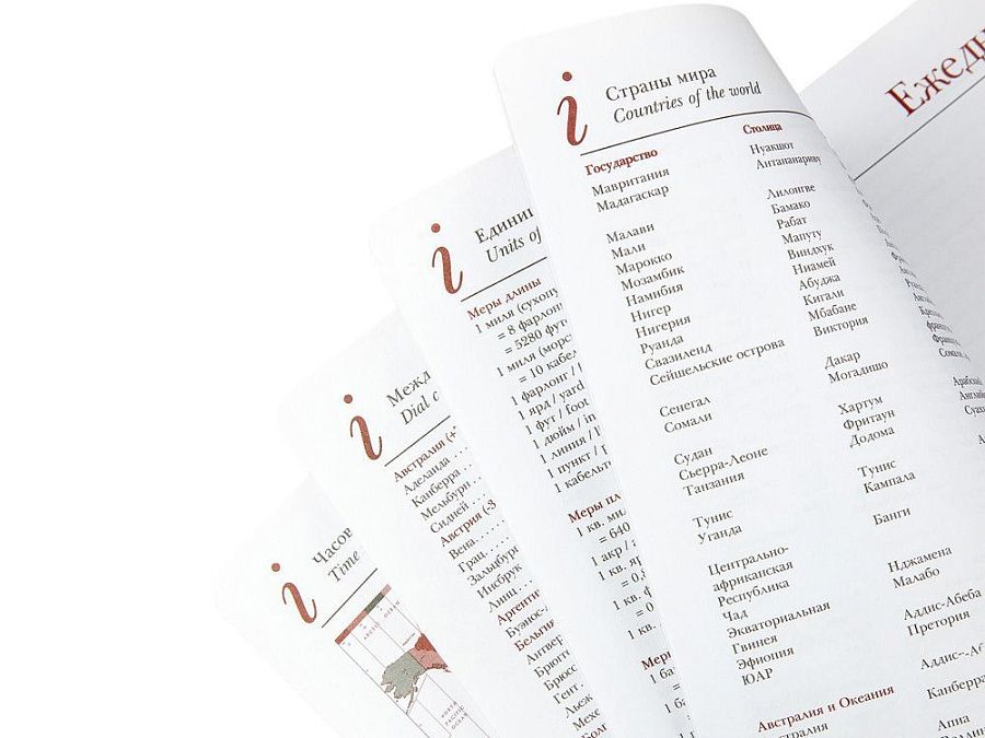 В ежедневнике «Sidney Nebraska» есть полезная справочная информация и телефонная книга на 18 листов, а также 272 страницы для записи идей, мыслей и составления рабочих планов. Специально для ежедневных офисных дел в ежедневнике используется качественная белая бумага плотностью 70 г/м². Разметка блока с указанием времени позволяет планировать дела с точностью до 1 часа.